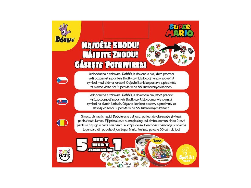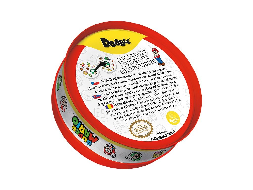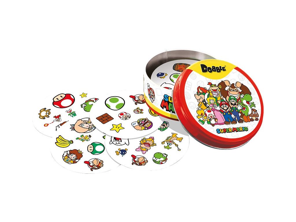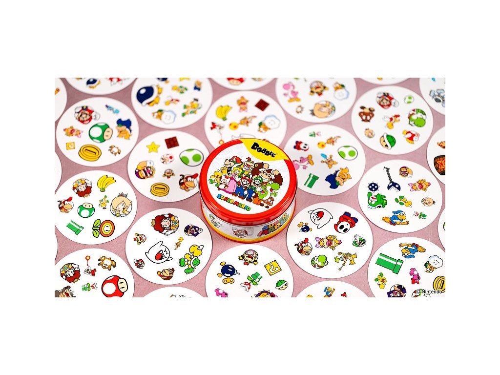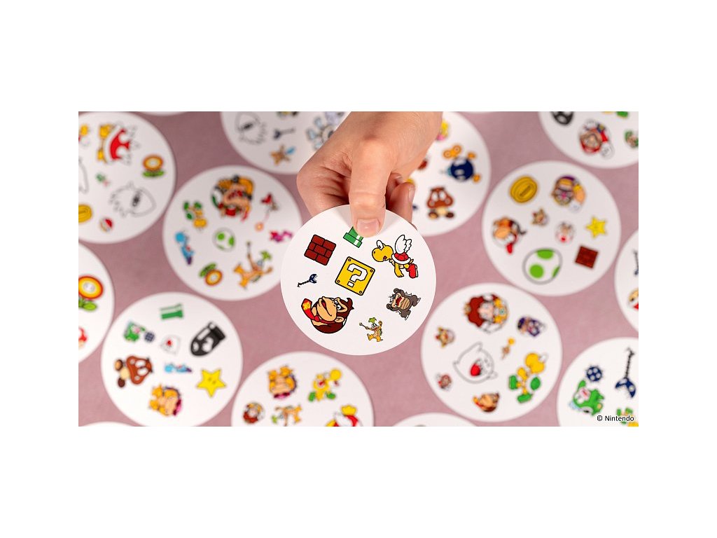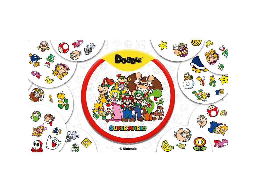 Postřehový bestseller se nyní vrací s oblíbenými postavičkami a ikonickými předměty ze Super Maria! Na každé kartě jich najdete 8 různých. Máte rádi Maria? Zahrajte si s ním a jeho přáteli i protivníky oblíbenou postřehovou hru Dobble! Hra je zaměřená na rychlost, postřeh a reflexy! Popis všech symbolů použitých ve hře najdete v pravidlech.