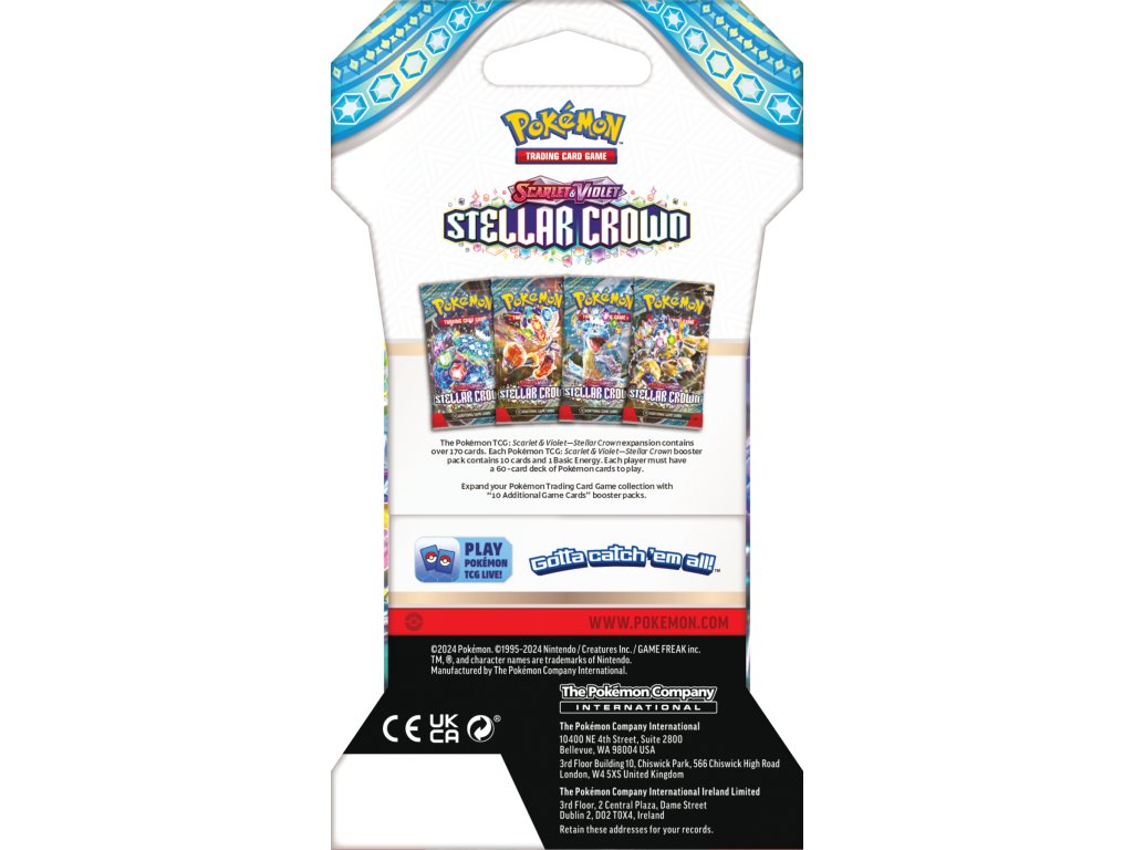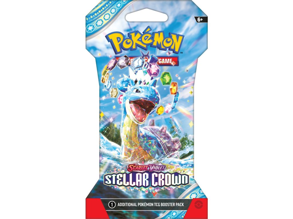 Blister booster karetní hry Pokémon TCG: Scarlet & Violet - Stellar Crown obsahuje 10 náhodných karet.