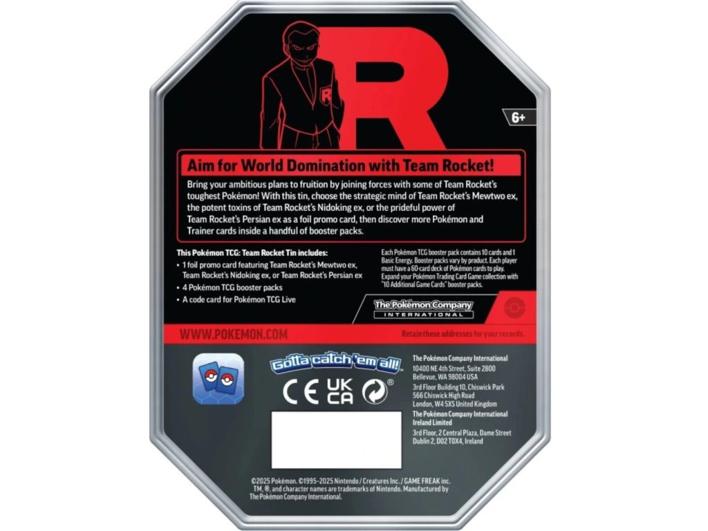 Vstupte do světa záhad a temných experimentů s exkluzivní sběratelskou plechovou krabičkou Team Rocket Tin, která přináší ikonického Nidoking ex v designu inspirovaném nechvalně známým týmem Rocket. Tento produkt je ideální pro sběratele i hráče, kteří chtějí obohatit svou kolekci o jedinečnou kartu a stylovou plechovku.