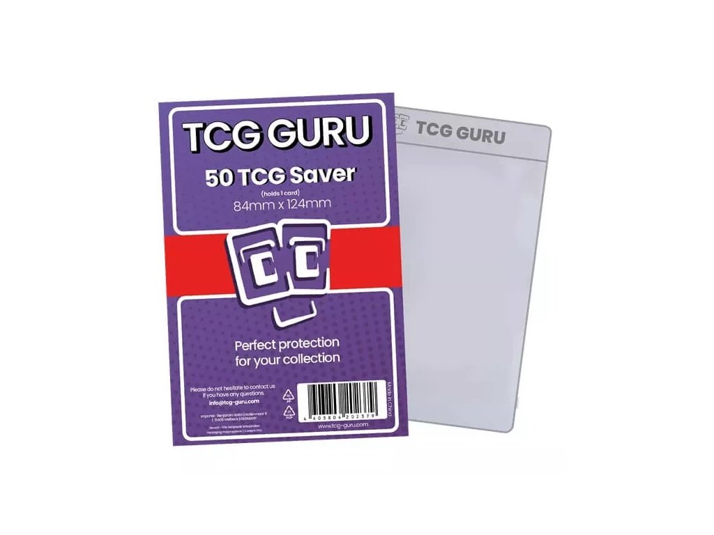 Obaly na karty TCG Guru Card Saver vhodné ke skladování karet. Jedno balení obsahuje 50 kusů.