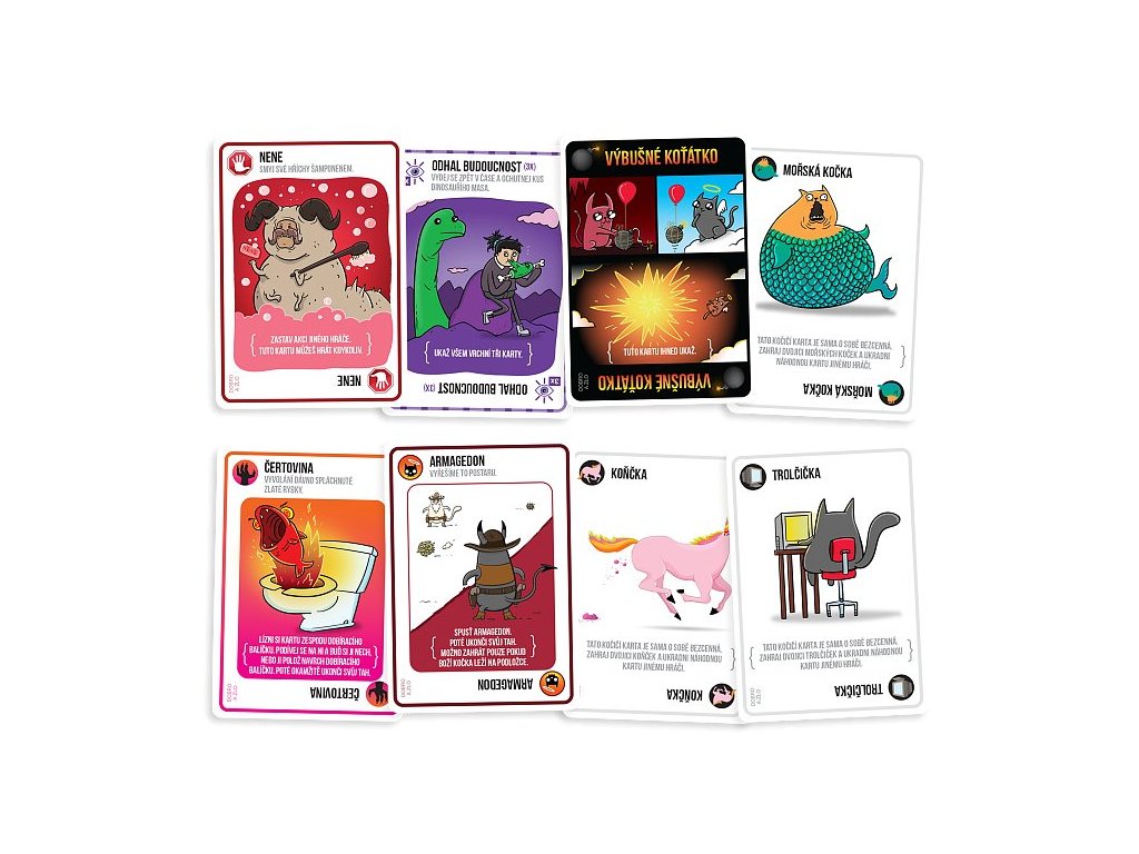 Vtipné ilustrace s ještě vtipnějšími texty vás pobaví a plně vtáhnou do hry, kterou budete chtít hrát stále dokola. Každá karta je originál. Pravidla hry jsou velice jednoduchá, vysvětlená za pár vteřin.